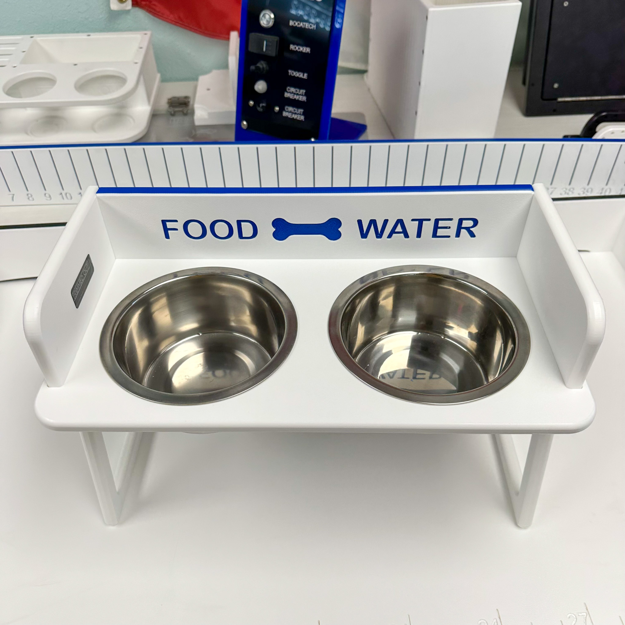 FDA approved anti microbial material Trimmed Outs Starboard Dog Bowl Stand offers both style and practicality for your pet’s dining needs.