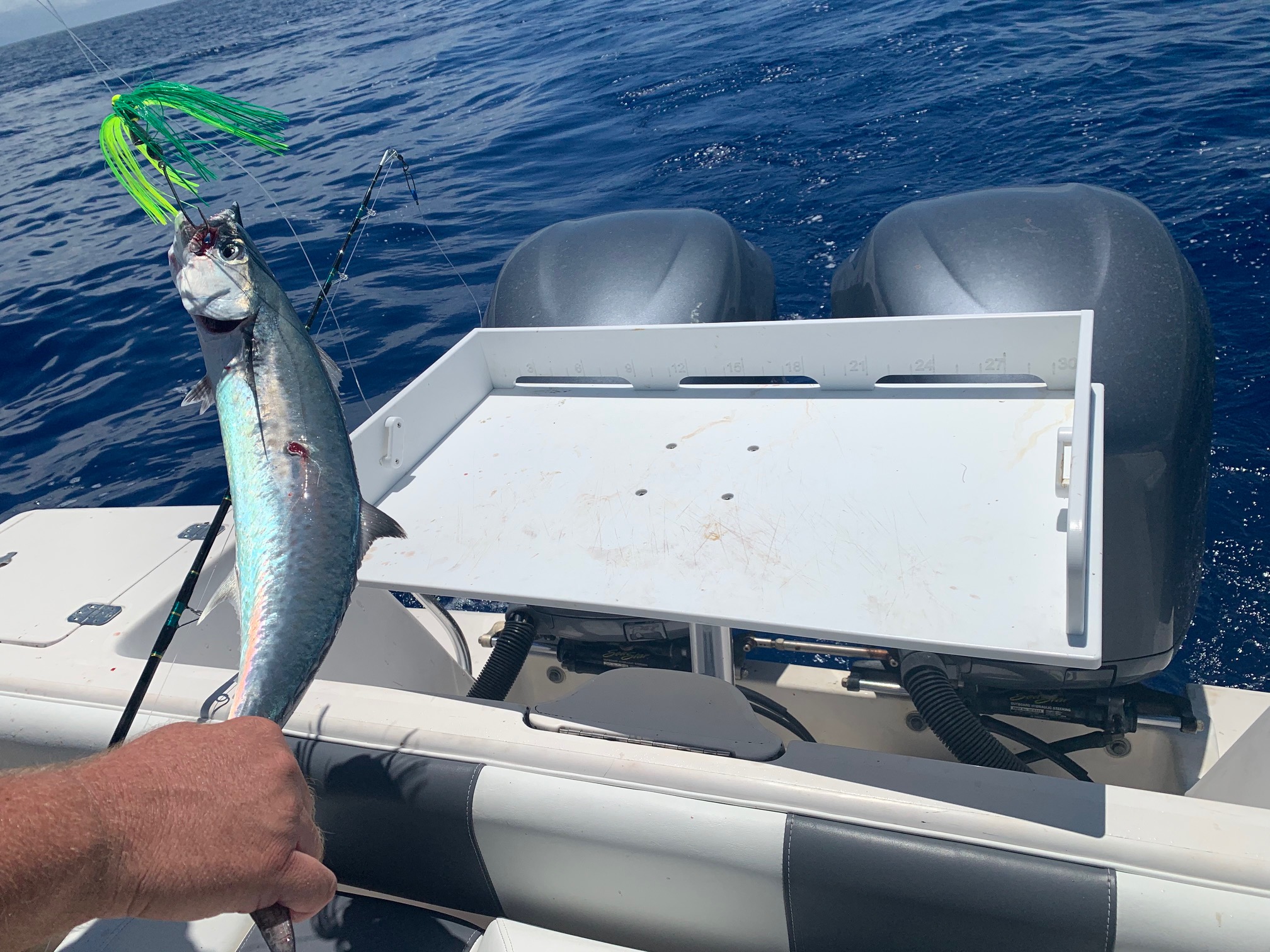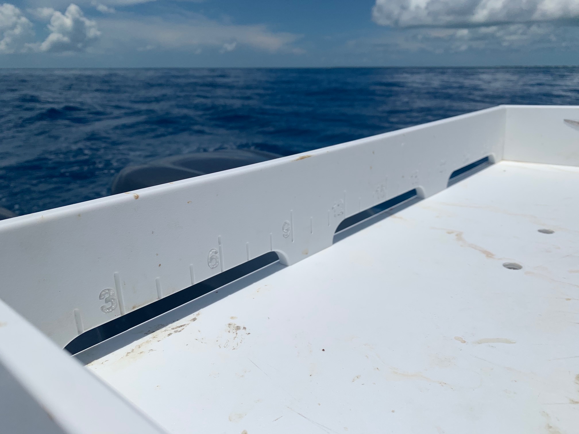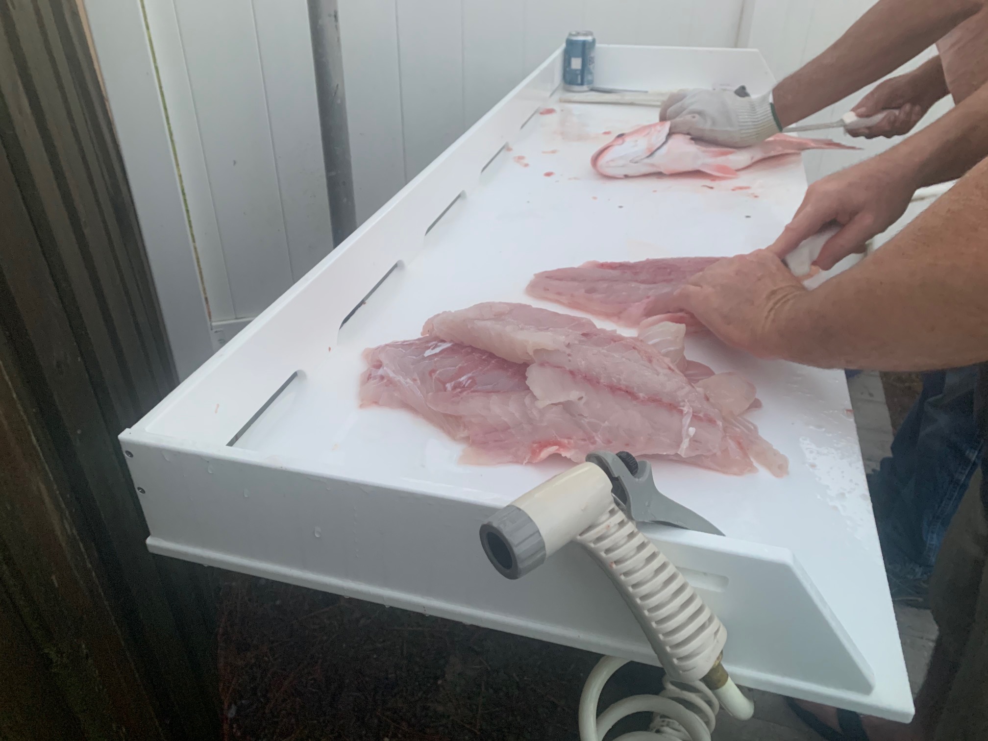 These attractive tables are nearly indestructible and excellent for cutting bait, measuring fish, or filleting fish.  This table could also be used for serving food and beverages. They are made from FDA approved, high density, polyethylene (King Starboard) which is more practical and sanitary than wood cutting tables. They will not crack, mildew or absorb fish odors. They are virtually maintenance free. This table features a fillet knife holder and a handy receptacle for your fishing pliers. The slot at the back of the tables permits instant water drainage from the work surface. Each table has a ruler engraved on the rear boarder for convenient measuring of your catch!