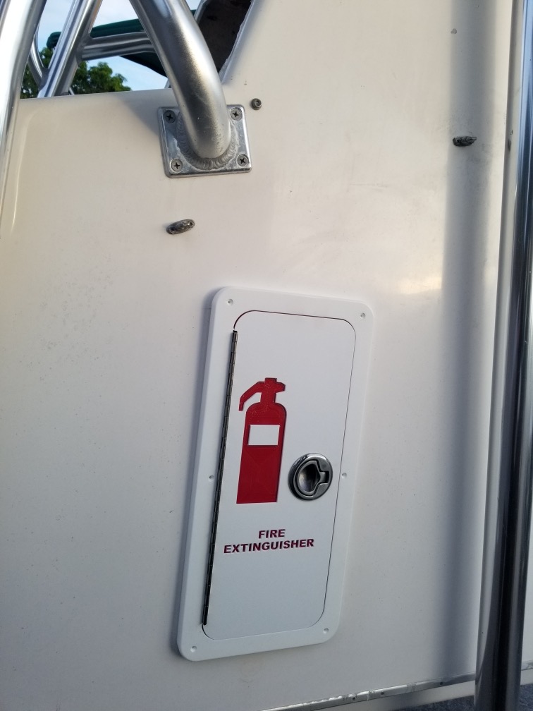 This box is the perfect way to protect your fire extinguisher and keep it in excellent operating order. This box also makes your fire extinguisher readily accessible in an emergency. Instead of mounting your fire extinguisher and leaving it exposed you can tuck it away in a box. No more digging around in “catch all” storage compartments looking for your equipment. This box is labeled clearly for anyone to find and understand. The labeling is actually carved into the starboard to make for a permanent label. There aren’t any stickers or markings that will fade or crack over time. This box is 100% starboard with zero ABS plastic which will crack over time.