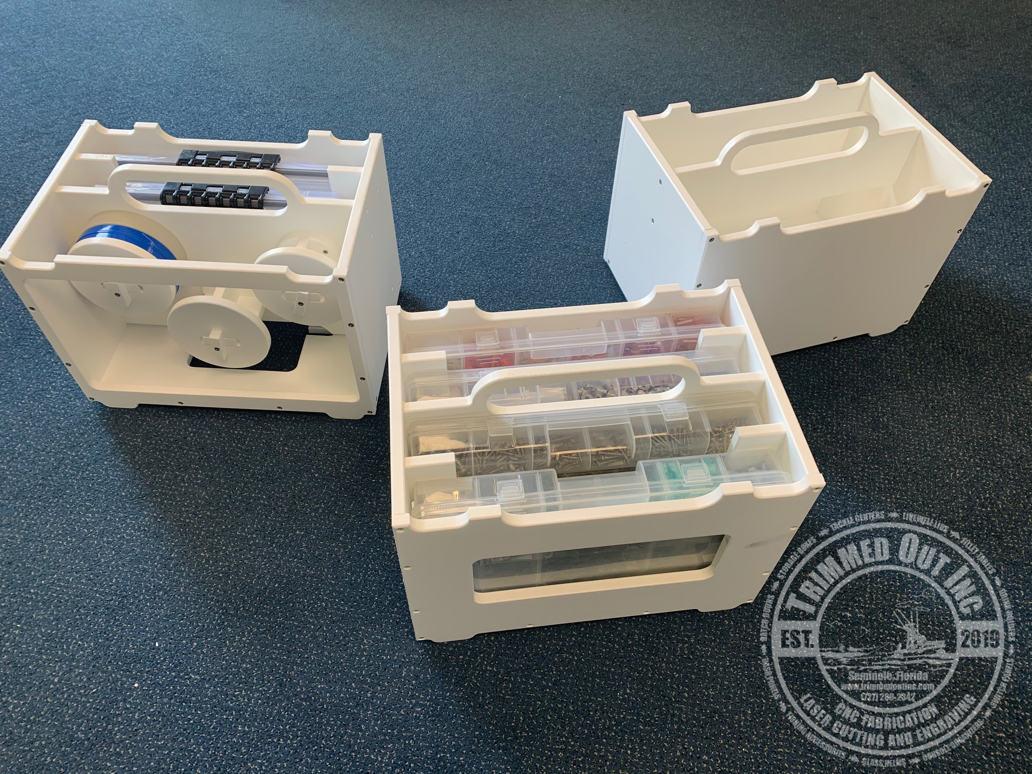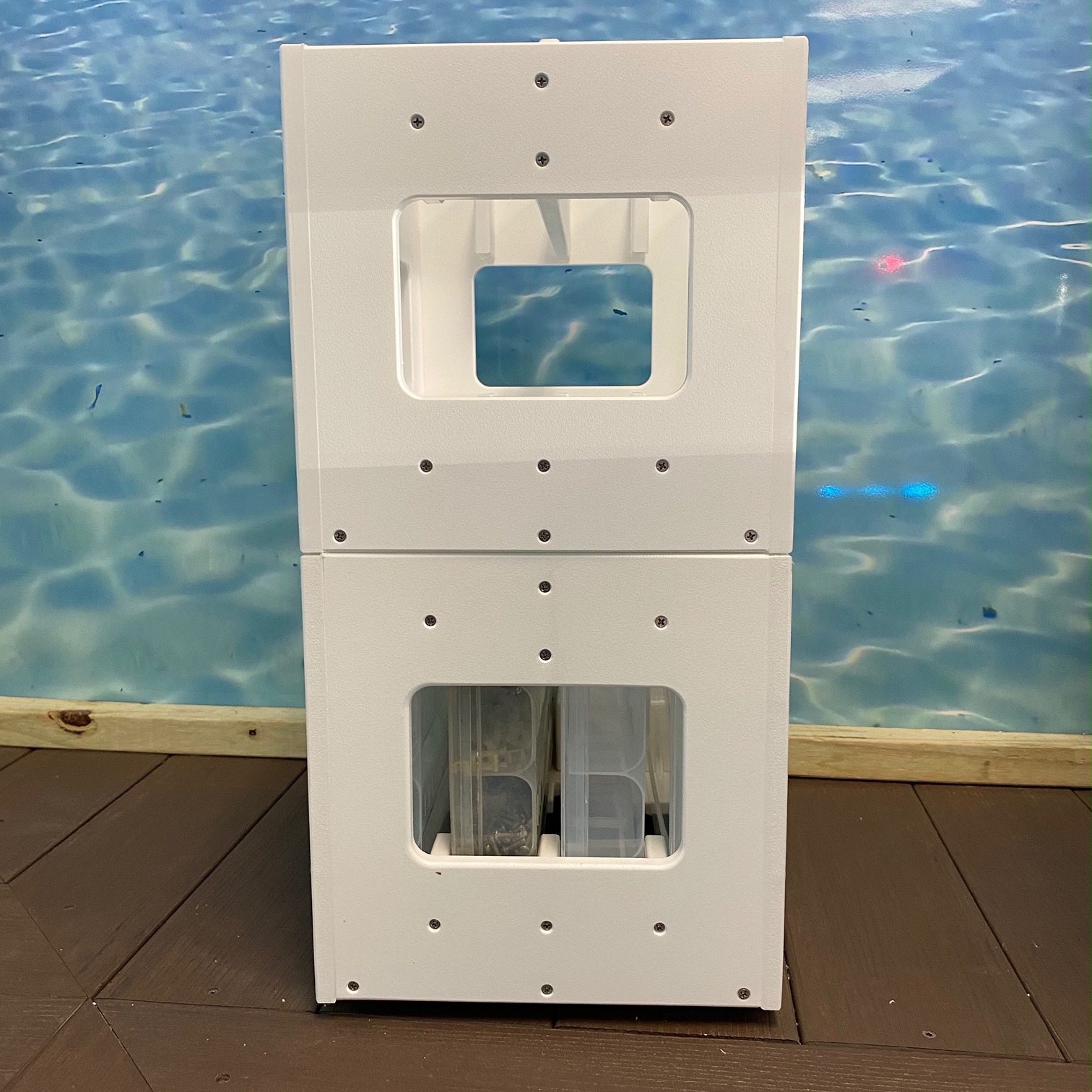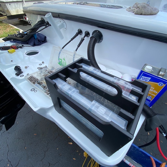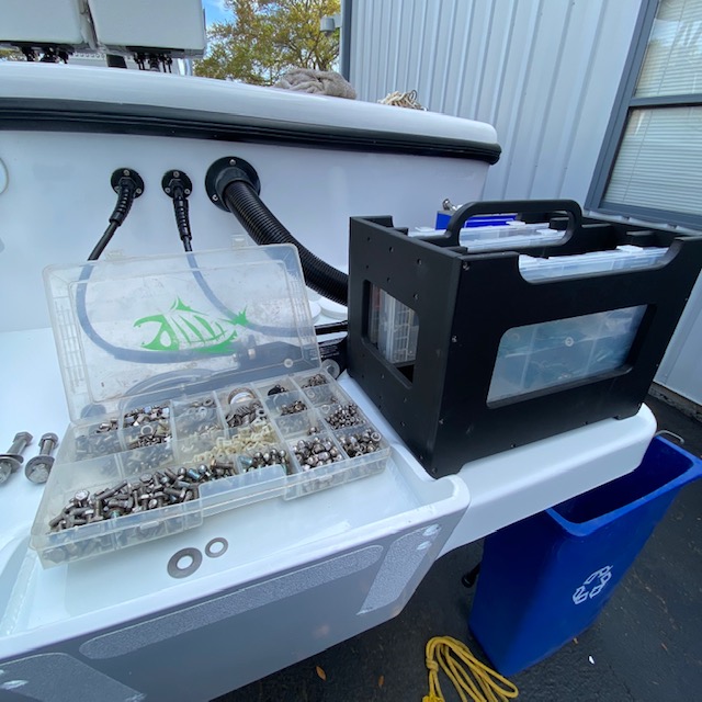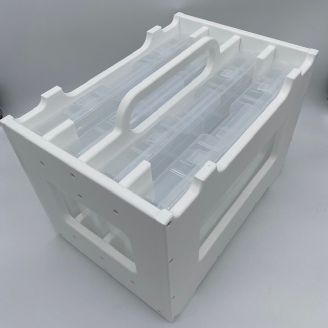 Each case is sold individually. King Starboard brand material construction. Assembled with Stainless hardware and designed to be stack-able for ease of storing. No more wet bags and zippers that seize up. This Stackable Tackle Carrying Case leaves your trays handy and accessible. If you love your Tackle Trays this is the perfect way to carry them. Sturdy case built to last. Can handle the marine environment. This hard outer shell protects the Tackle Tray from damage and keeps your tackle and hardware safe. These rigid boxes are even designed to be stack-able to save space when storing them. Comfortable handle is 7″ long to give you the best grip possible if weight is off center.