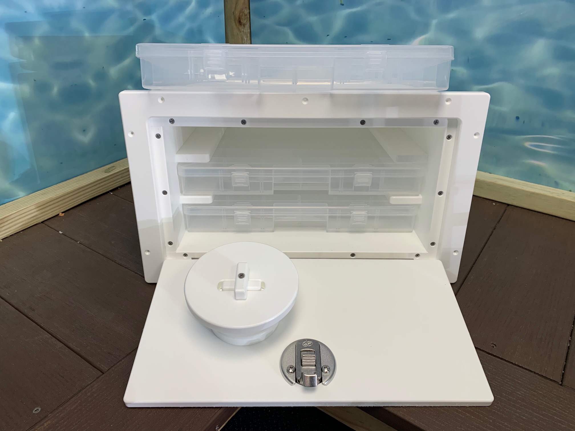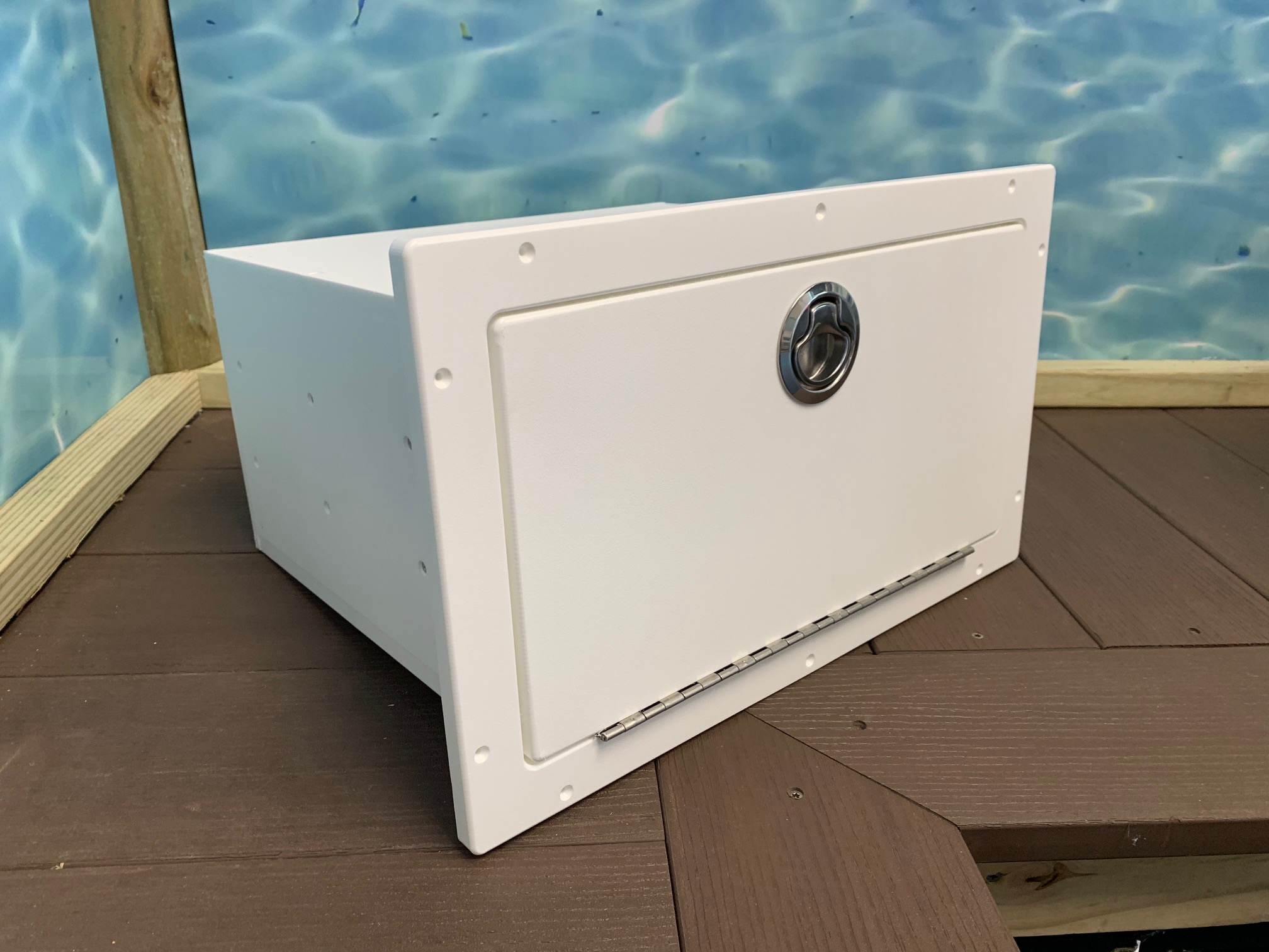 This product helps to replace the plastic injection molded Plano storage bin box that always crack and break over time. The plastic injection doesn’t hold up well in the marine environment, this starboard replacement will be more durable to not breakdown over time.